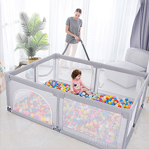 Foldable Baby Playpen, Play Pens for Babies and Toddlers, with 4 Pull Rings and 1 Storage Box, Large Playards for Easy Installation and Storage, Material Safety and Stability.
