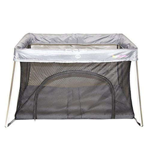 - QUICK AND EASY. The Portable Travel Crib is exactly what you need for the perfect excuse to go for holidays, picnics, traveling and visiting families and friends with your baby. Perfectly fine to use at home too. Very easy to set up and take down. Written instructions included in bag. - USEFUL AND IMPORTANT FEATURES. With more useful features than other cribs for infants, this has a zippered front to allow easy access. This unique feature is a "back saver" for those dealing with back pain. It also allows the tired mom and dad to snuggle with baby -KEEP MOSQUITOES AND FLIES AWAY. No parent wants to see mosquitoes, flies and other annoying bugs attack their child. Another feature you don't often see is the removable mosquito net and sunshade canopy. A truly awesome necessity for the great outdoors. THIS is a ADDED FREE BONUS! - IT IS EASIER THAN EVER TO BRING THE CRIB. This quality lightweight baby crib with mattress weighs only 11.5 lbs. Very light and super portable to take anywhere and everywhere. You also receive a matching bag with hand carry handles and shoulder straps to carry it in. - CUDDLE THE BUNDLE OF JOY. The comfortable 1" thick mattress ensures proper sleep and rest. It is custom made to fit your crib perfectly. A well rested and contented baby is a happy baby. The exterior measurements of the ElanBambino portable Crib is 49" wide x 29.5" deep x 27" high, takes up very little space The usable inside space for baby is 44" x 24". THE ElanBambino Travel Crib IS MANUFACTURED AND SOLD EXCLUSIVELY BY Eagle Smart Accessories.