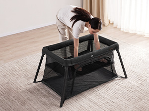 design, ensuring even bottom support and preventing the crib from tilting, improving stability and allowing babies to play safely; This has increased parents' confidence in the safety of travel playard; A great option for trips, visits to family or when you need a safe and small space at home